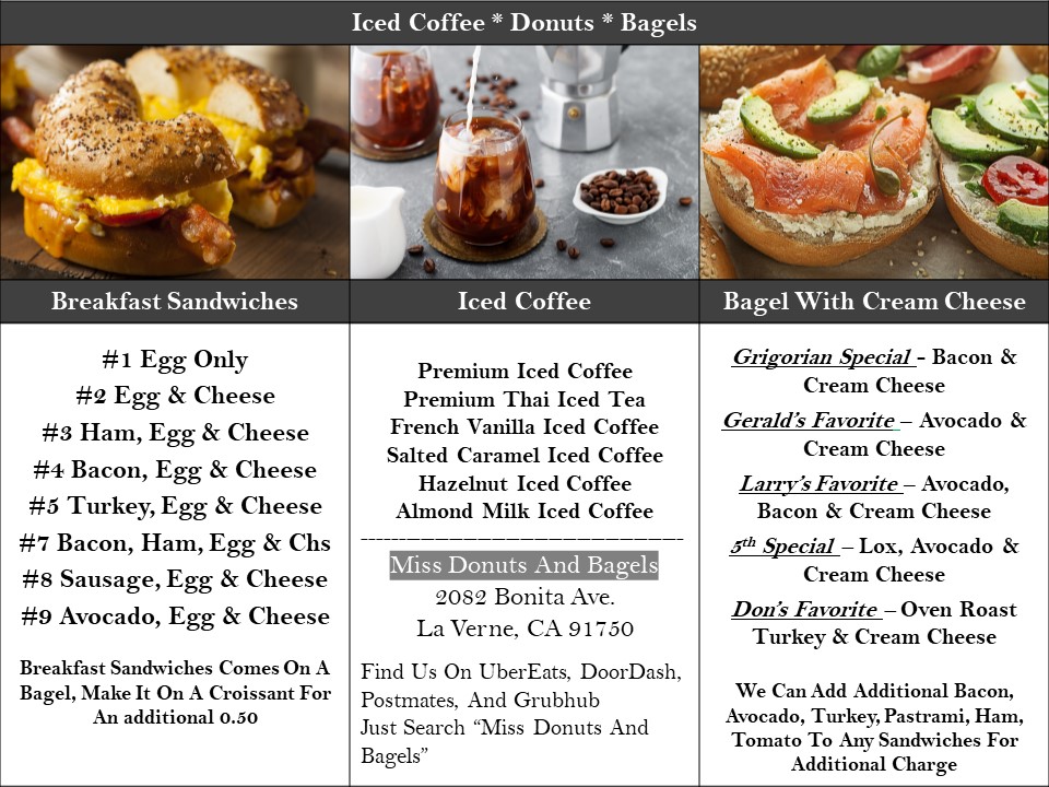 Miss Donuts and Bagels Menu